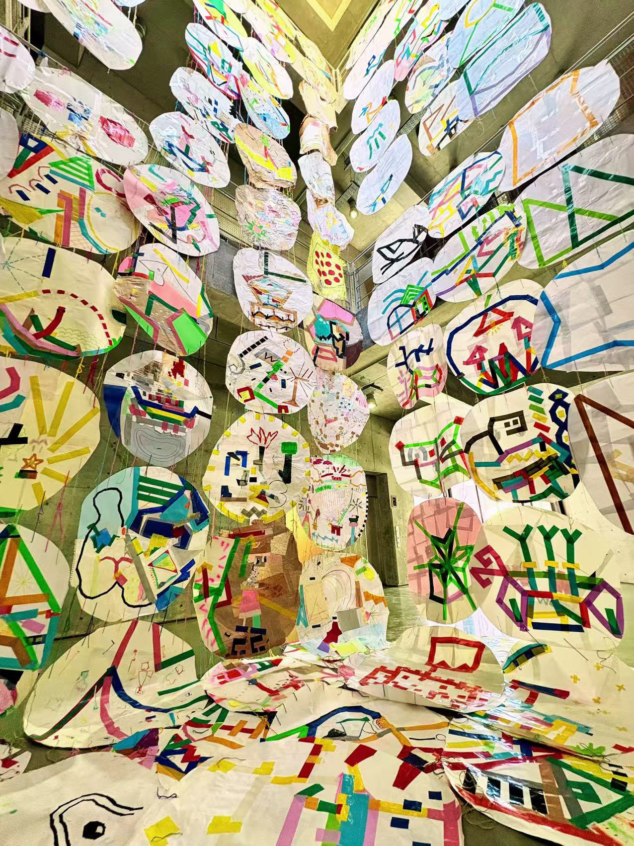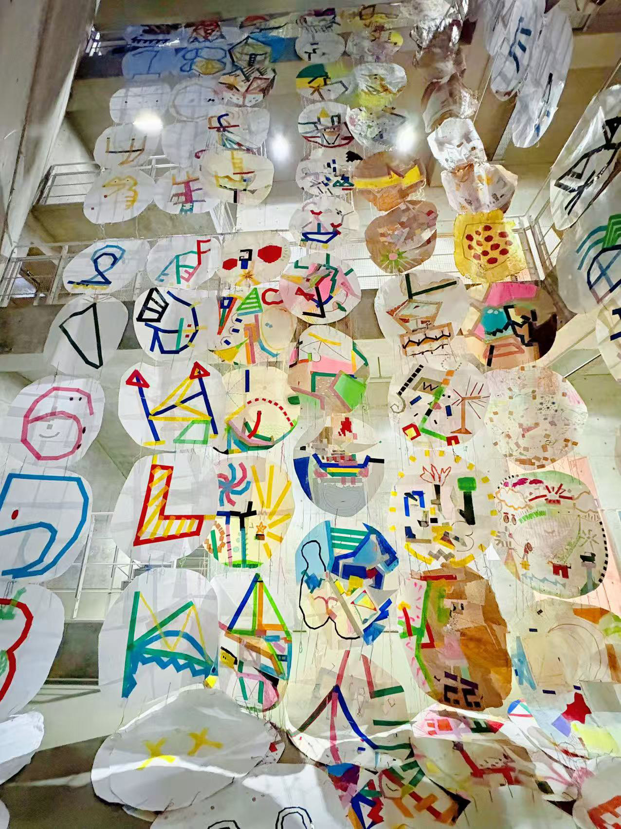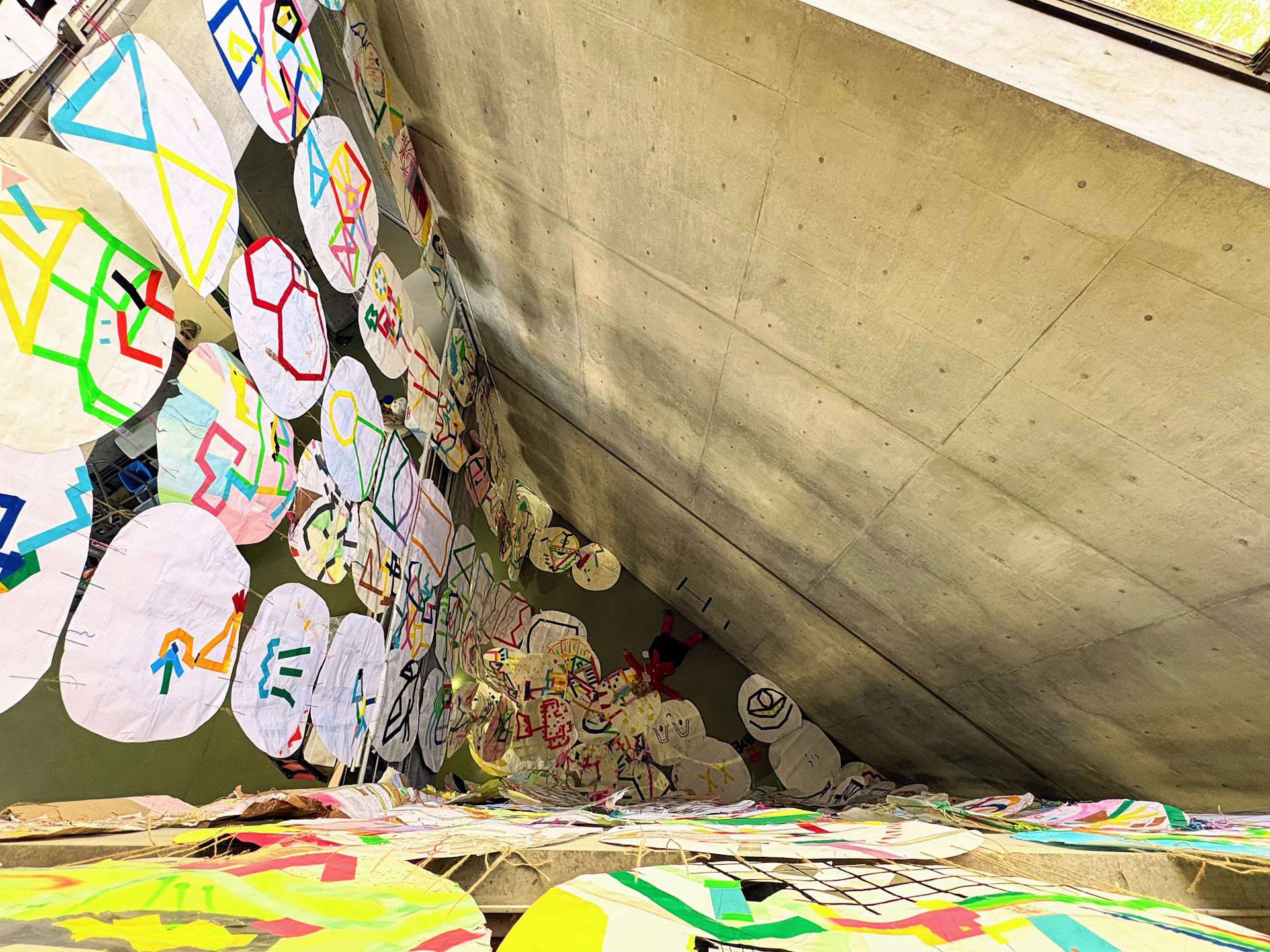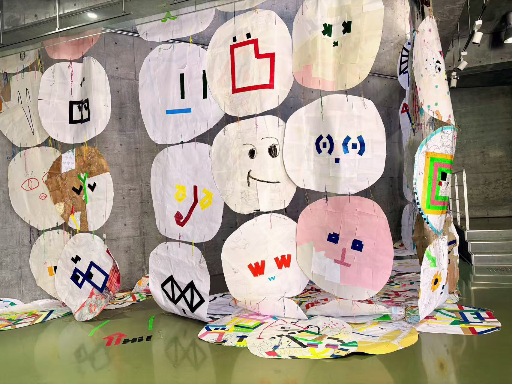 本作品《HI!》は、街の「新陳代謝」をモデルに、人と人、人と物が日常の中ですれ違う瞬間に生まれる、ささやかな感覚や関係性を表現したインスタレーションです。鑑賞者はその内部を歩きながら、無数の視線や気配に包まれ、街に身を置くような感覚を体験します。立ち止まったとき、ぜひ隣の顔にそっと「HI!」と声をかけてみてください。