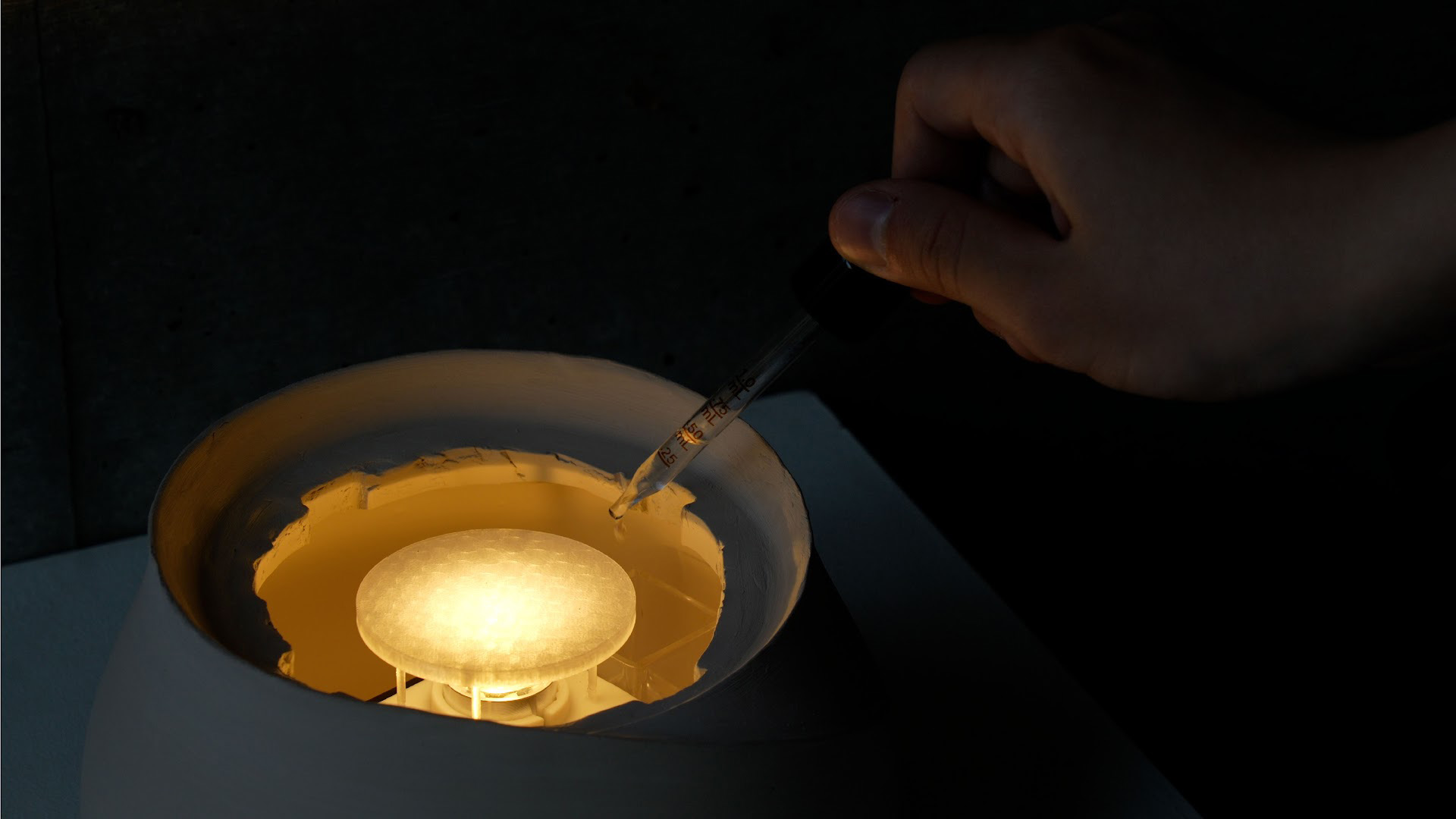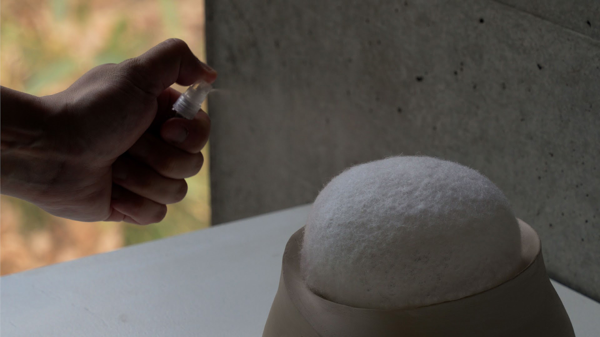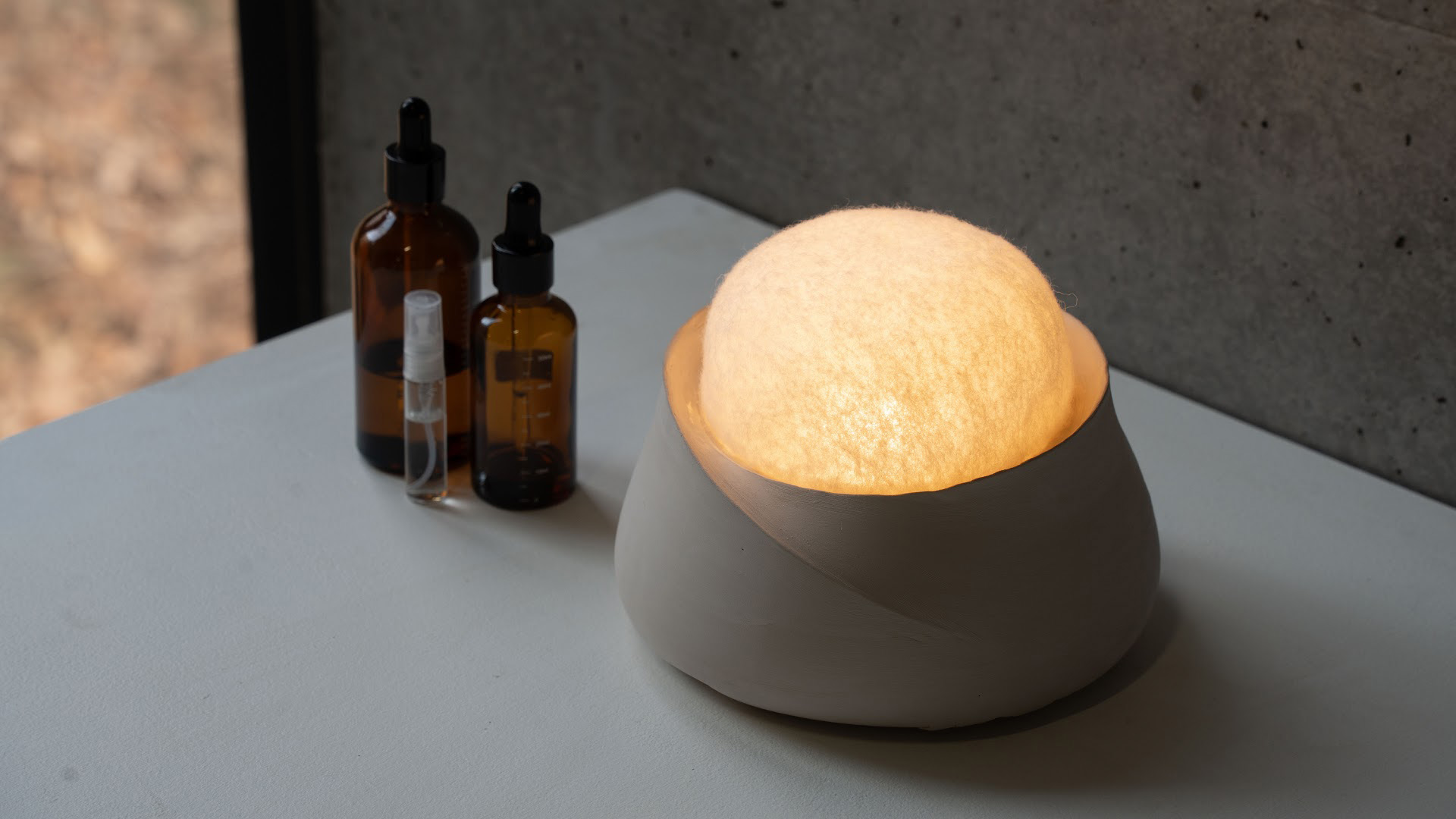 「赤り(あかり)」は、スイカズラという赤ちゃんの香りを用いたアロマライトである。素焼き磁器とフェルト材料それ自体が香りを吸収して拡散する性質を持ち、やわらかな触感と穏やかな光によって、本来は無形である香りを形の存在感として知覚させる。
