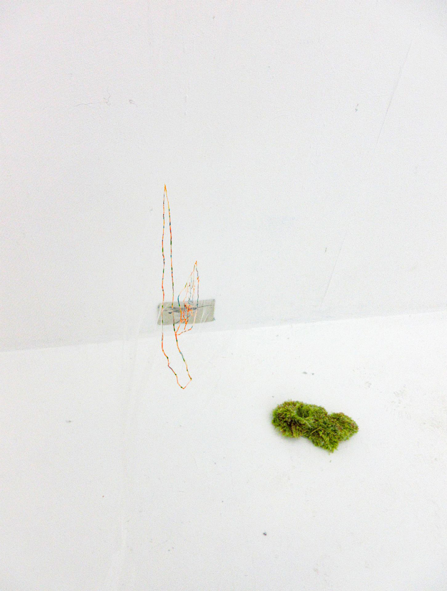 像になる以前。歩く中で視線が引っかかり、そのまま通り過ぎる感覚がある。「浮き場のnode」は注視される直前の知覚を、布を介して空間的な経験として立ち上げる試みである。紗や配置の変化は意味を定めず、移動や立ち位置により断続的な引っかかりを生み、方向や距離、気配として身体に残る感覚を静かに浮かび上がらせる。本作は、見ることが定まる前の方向や距離、気配の感覚を受け取る〈場〉として構成されている。