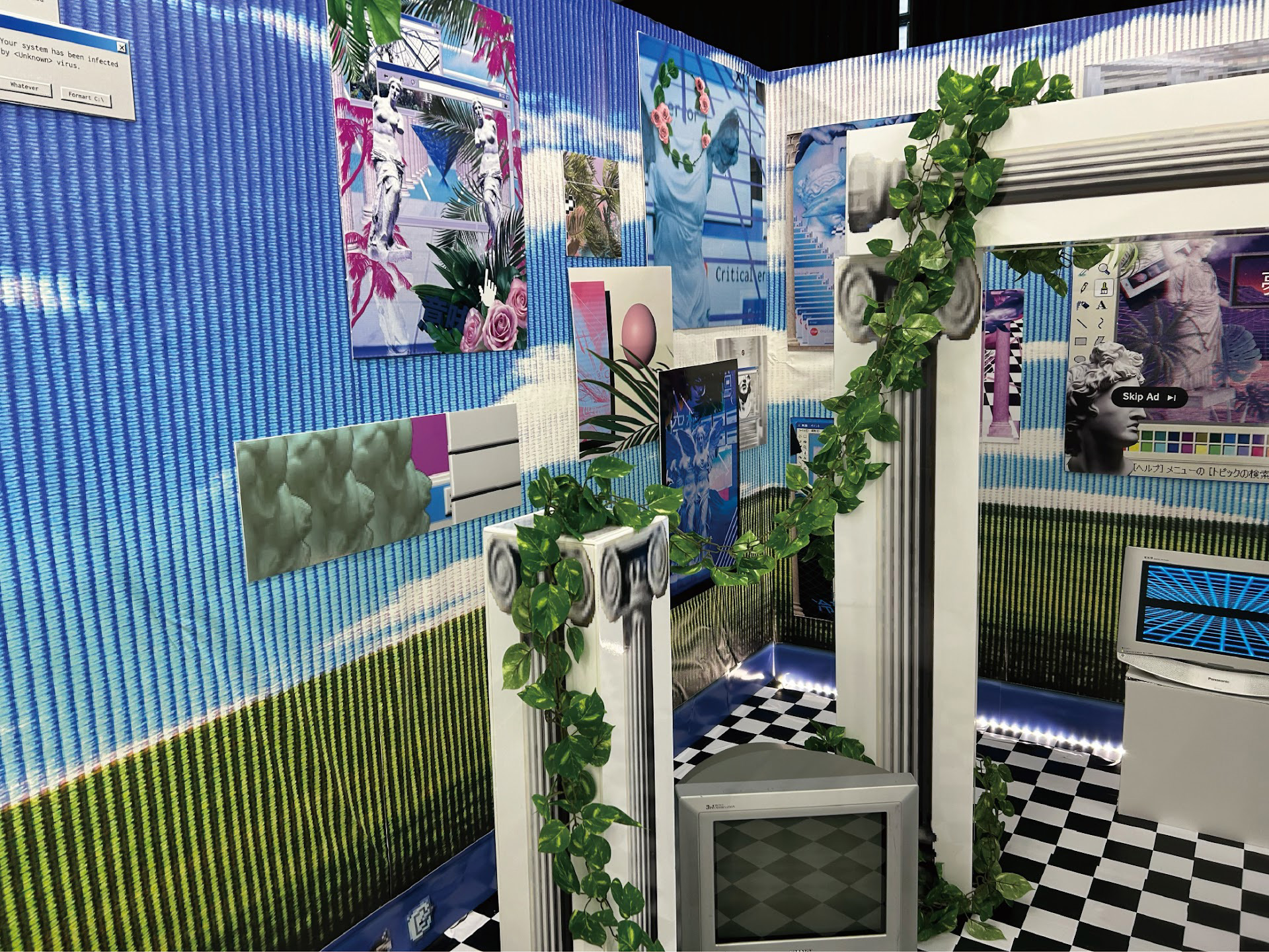 生きながら死んでいるようなそれは、矛盾して変質していく曖昧なハリボテのようなもので、突き詰めるほどに中身がないものに思えた、デジタルな物の腐食の模倣としてのノイズ 平面に現れる偽りの空間など矛盾を抱えて使い古されたその虚構を立ち上げようとした