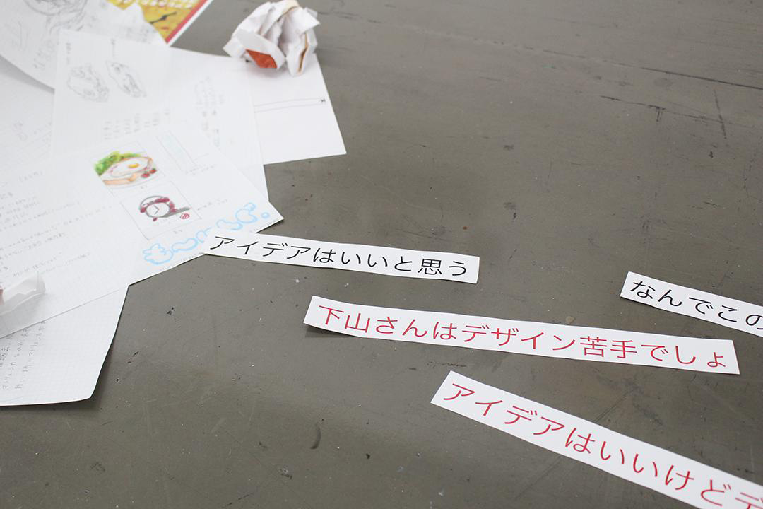 グラフィックデザインを4年間学んできた。しかし、講評のたびにデザインが苦手だという事実に苦しめられた。私にとっての好きなことと得意なことは違うらしい。友達、周りの人より全くデザインができないけれど、最後くらい自分と向き合うことにした。床には過去の課題作品を、目線レベルにはブラッシュアップしたものを展示した。