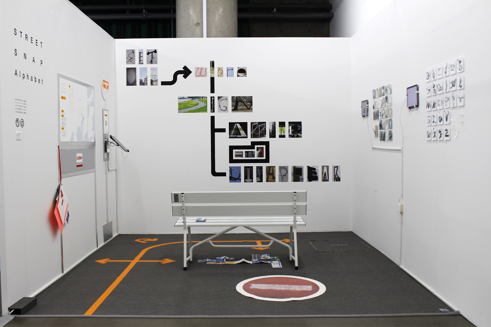 街中の景色を歩きながら観察し、アルファベットとして立ち現れるかたちを、写真として収集した。それらの写真をもとに、ポスターやZINE、映像作品へと展開した。