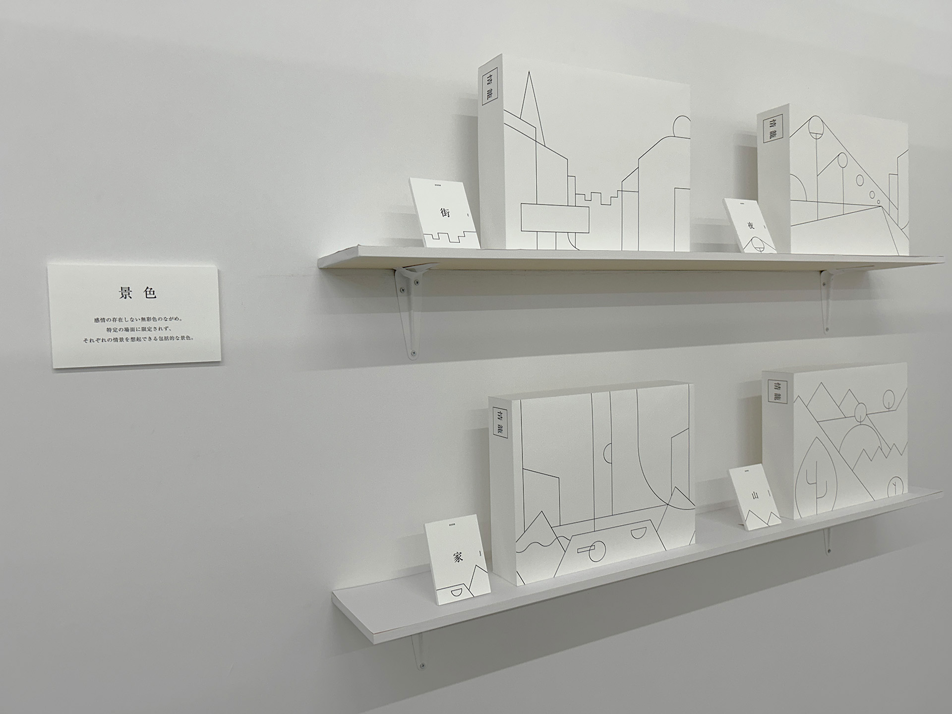 それぞれの持つ感情は人によって異なり、また景色が違えば同じ感情でも異なる状況が考えられる。この感情と景色の組み合わせを「情景」として捉え、感情(内箱)を景色(外箱)に詰めたギフトボックスとしてパッケージにしました。