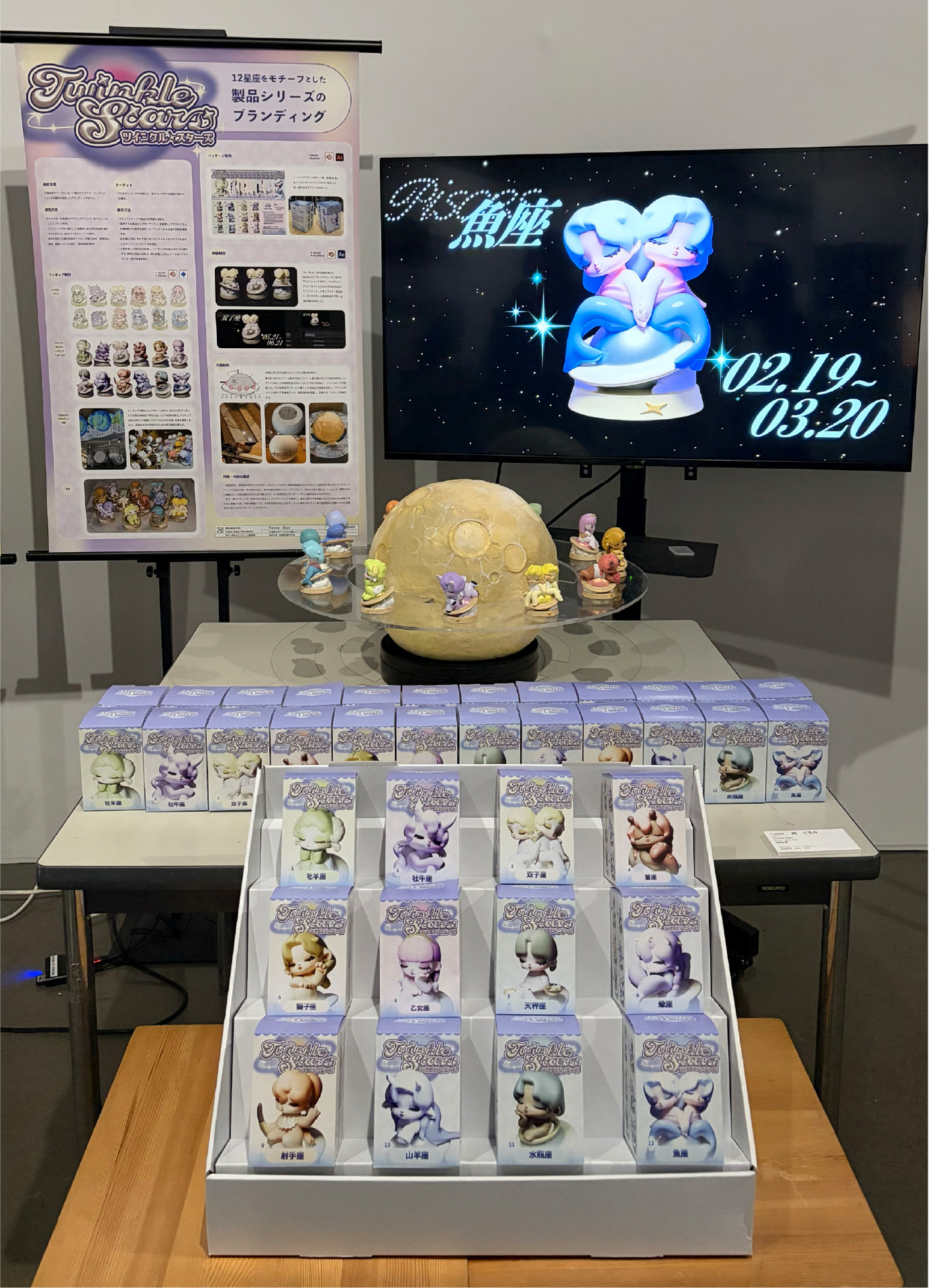 12星座をモチーフにしたキャラクターフィギュアシリーズのポップアップスペースを演出した展示風景。