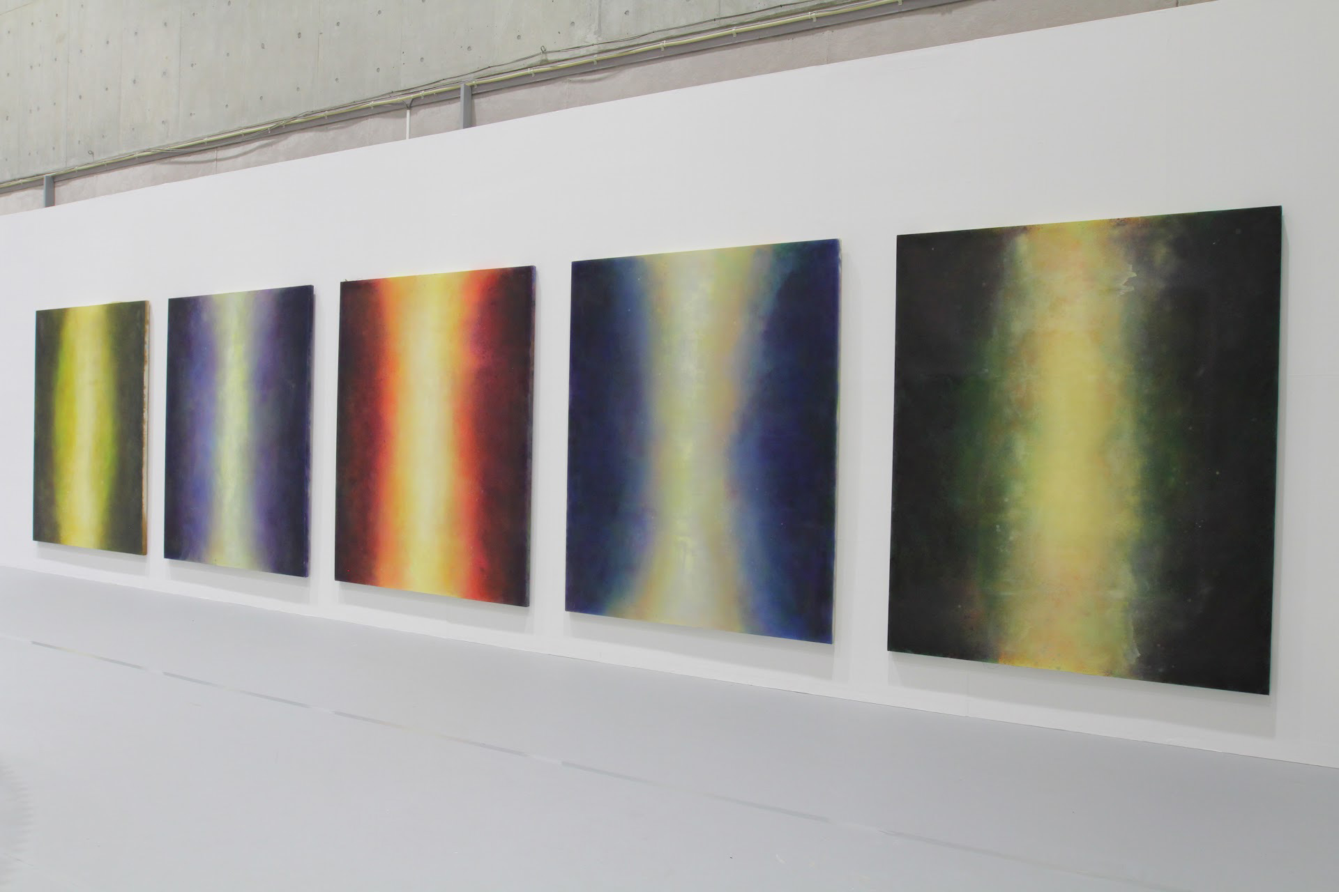 次々に流動する色面はキャンバスに留まらず、作品は絵画の枠を超え、鑑賞者のいる空間そのものへ広がっていく。 場を知覚した時、そこに在ることを感じる。