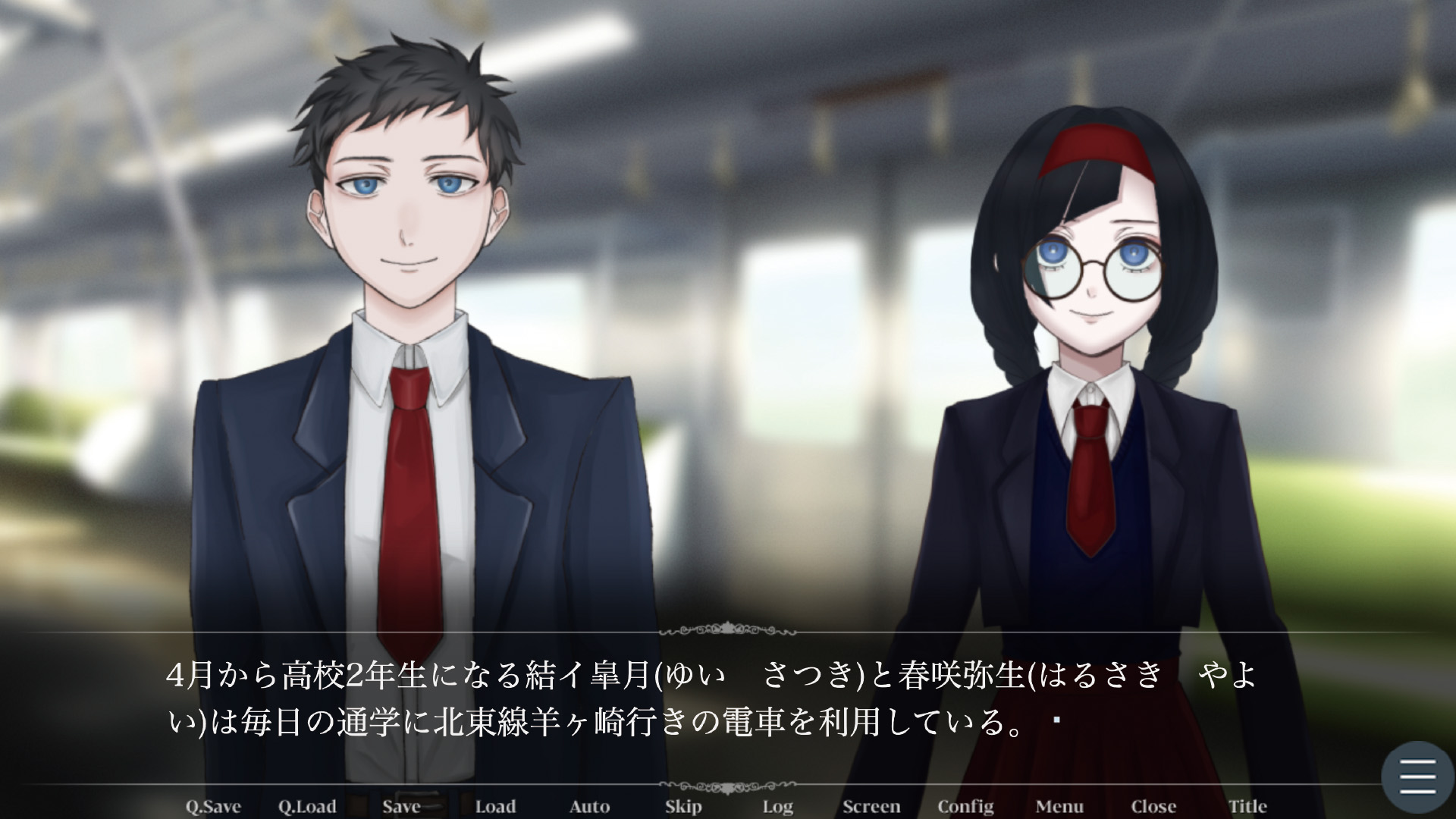 ゲームのキャプチャです。シナリオを読み進めながら動くキャラクターを見ることができます。