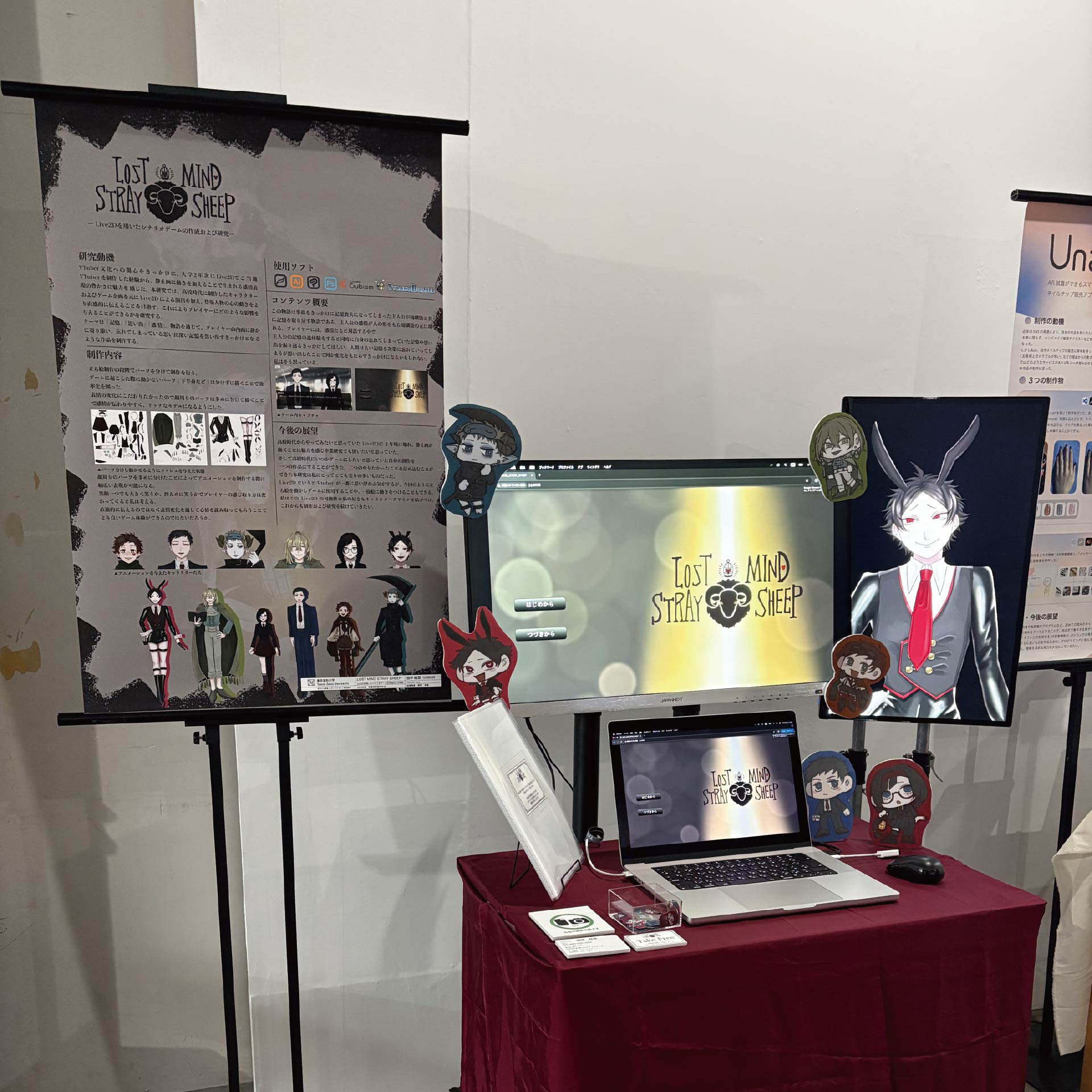 プレイできるゲーム作品、Live2D映像、資料を展示しました。