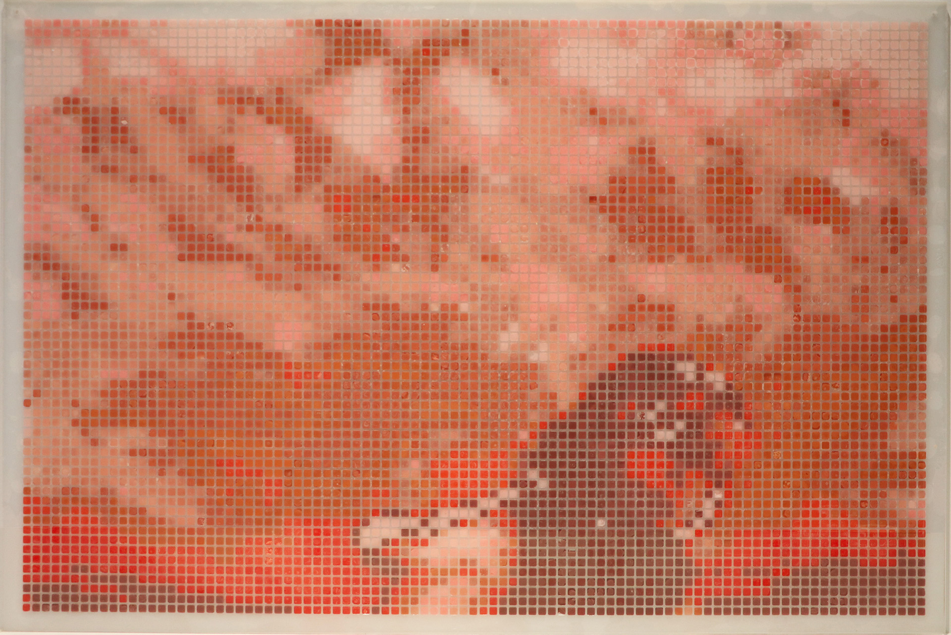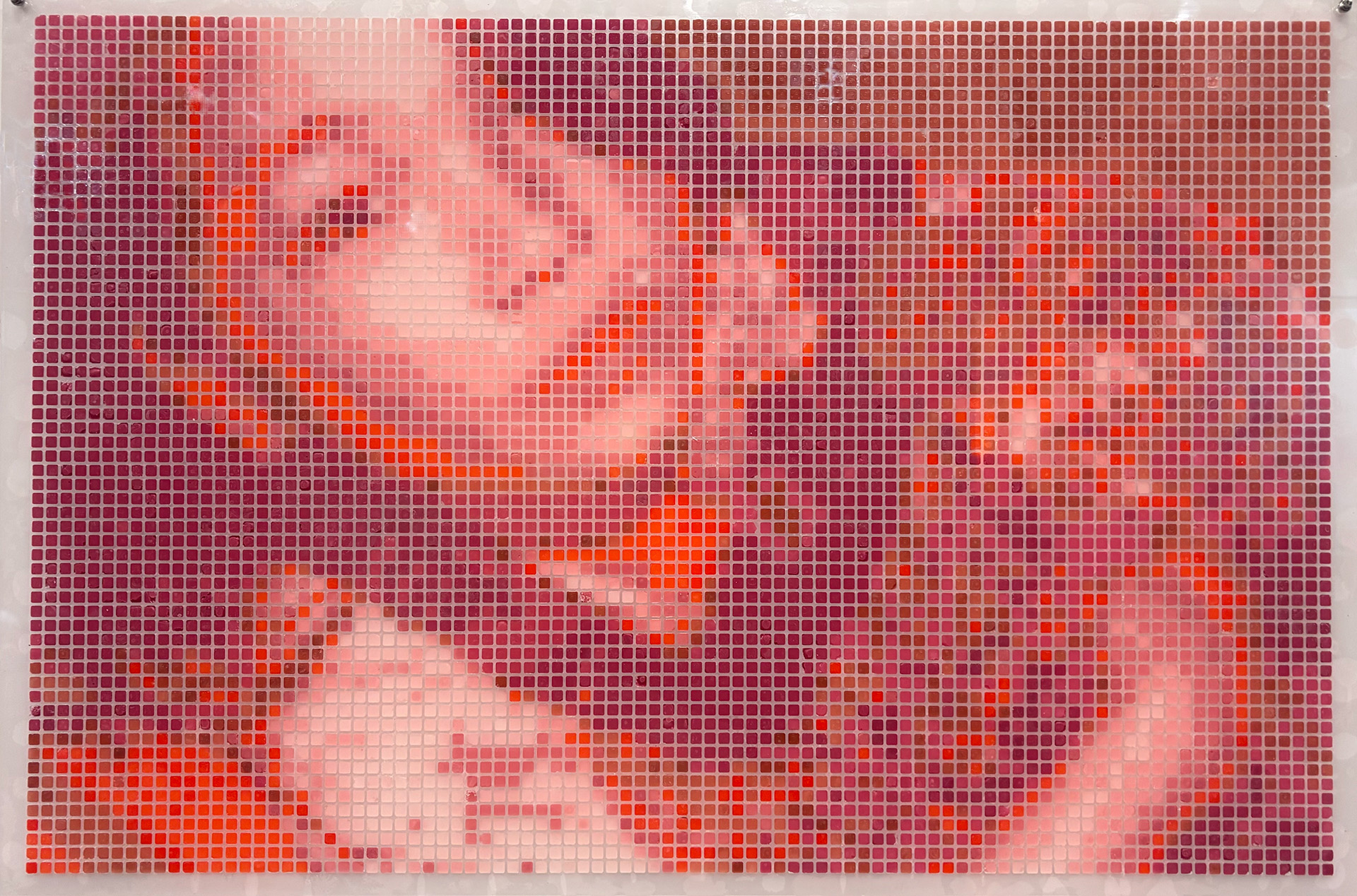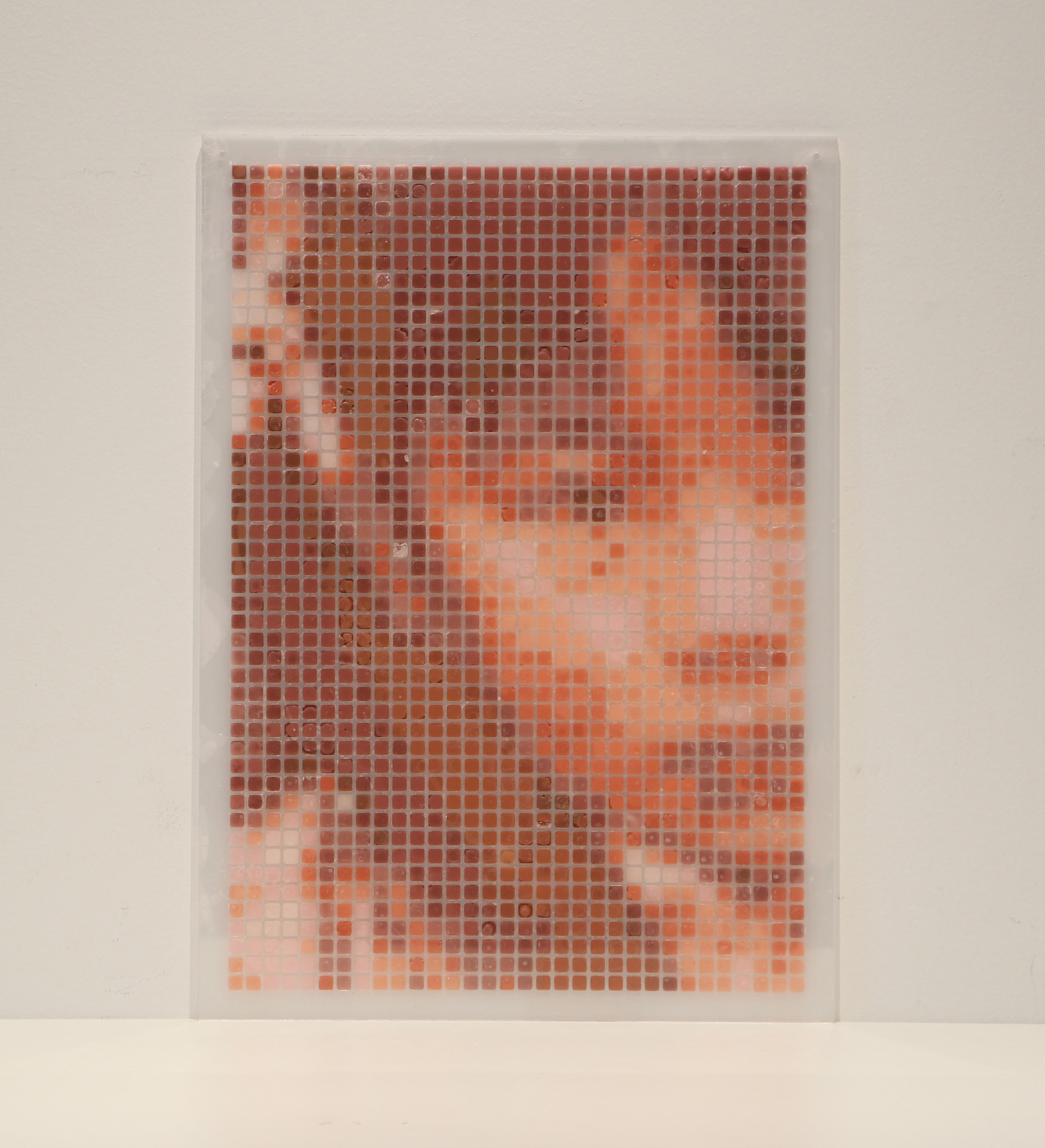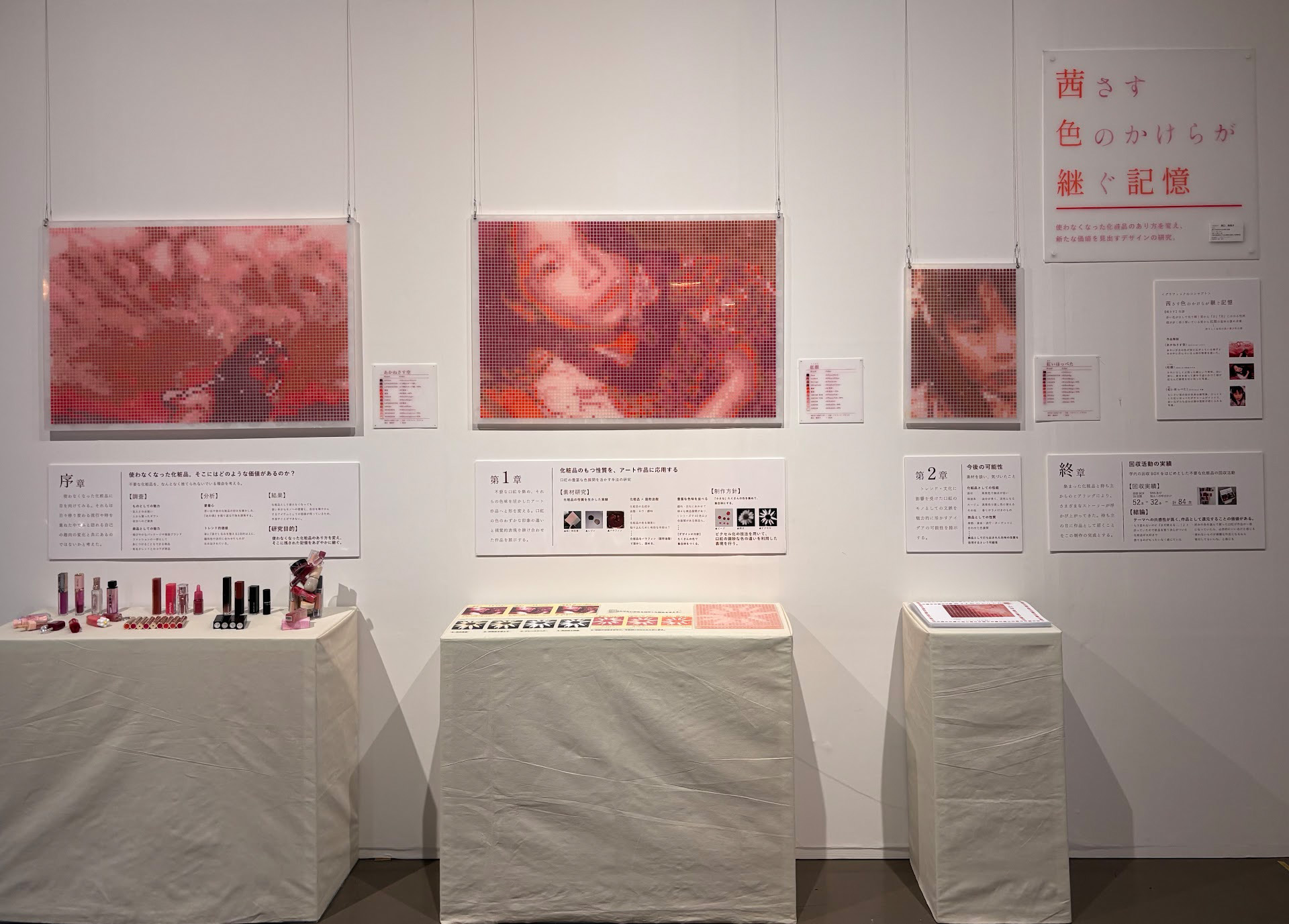 不要な口紅が使われずに眠っていることに着目し、それらに宿る記憶をあざやかに継ぐための作品へ形を変えた。口紅の豊富な色展開を利用すべく、各色をピクセルの集合体として1枚の絵を成し、視覚的表現を行った。『茜さす色のかけらが継ぐ記憶』をコンセプトに掲げ、口紅の顔料である茜と、茜さすという古語の持つ、若々しくて血色の良い青少年の顔の意味を掛け合わせ、幼少期の顔や夕焼け空の様子を口紅の色味で表現した。