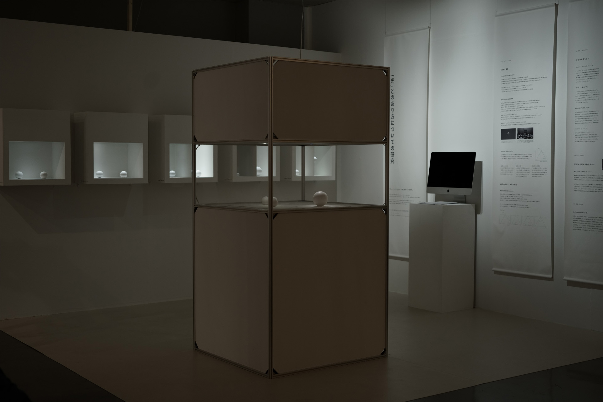 本研究は、この固定された関係から一度距離を置き、モノの属性(位置や大きさ)に光を付随させることで、「モノ」と「光」を対となる表裏一体のものとして捉え直し、新しい関係構造を模索するための試行である。